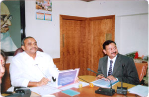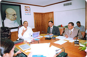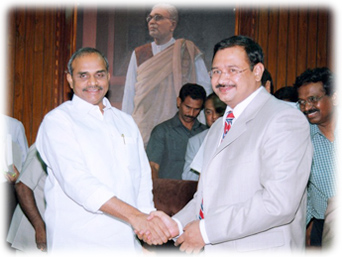 Dr. Y.S. Raja Sekhar Reddy, Hon'ble Chief Minister, Govt. of Andhra Pradesh and Sri T.Srinivasa Rao, Chairman, Whitefield Paper Mills Ltd., during exchange of MoU between Government of Andhra Pradesh and Whitefield Paper Mills Ltd., on 27th March, 2006