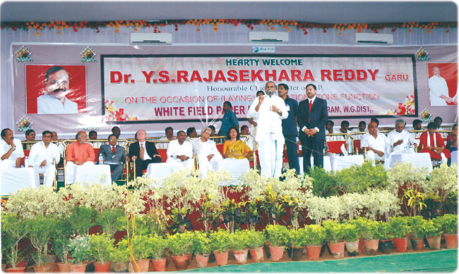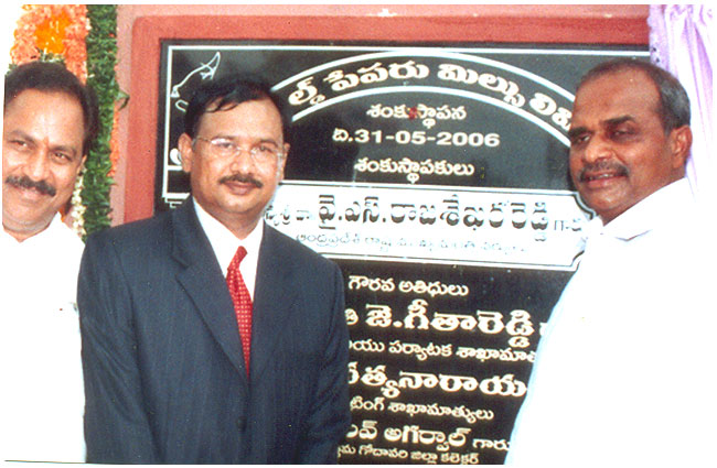 Dr. Y.S. Raja Sekhar Reddy, Hon'ble Chief Minister, Govt. of Andhra Pradesh and Sri T.Srinivasa Rao, Chairman, Whitefield Paper Mills Ltd., and during the occasion of foundation stone laying function of Whitefield Paper Mills Ltd. on 31st May, 2006